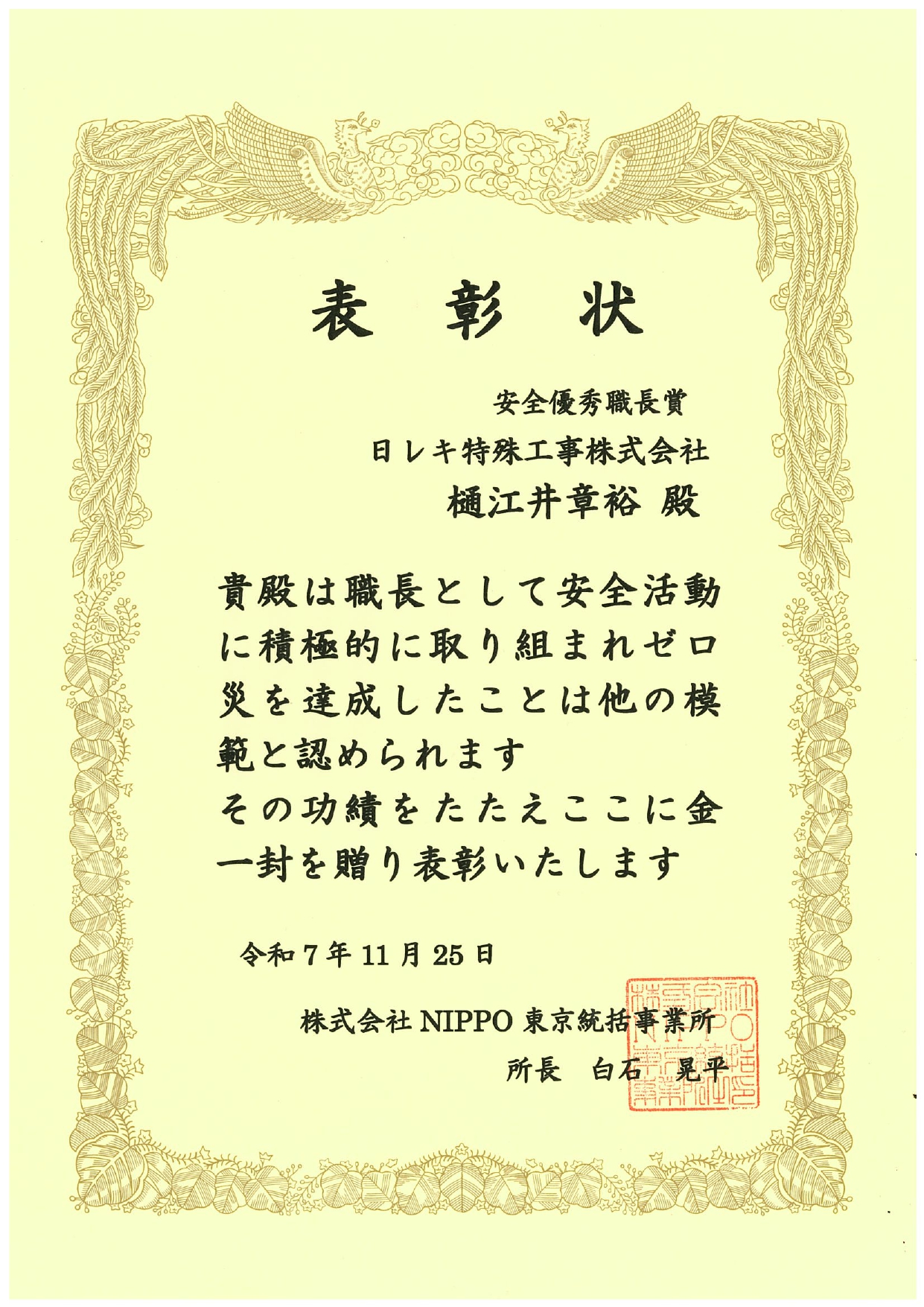 令和7年度 千葉県県土整備部難工事表彰を受賞しました